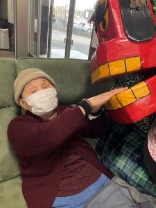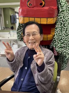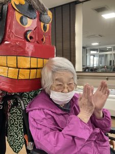 職員による和太鼓の演奏を見て頂き、縁起物である獅子舞により利用者様方の健康と幸せを